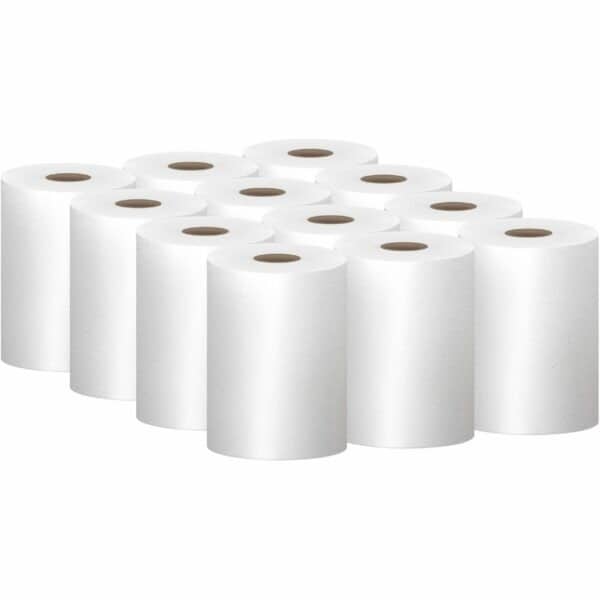 Издръжлива 2-слойна ролка за кърпи за ръце с бяла релефна текстура. Размер на листата 20ь2×20 см, дължина на ролката 47 м. Грамаж – 450 гр. С перфорация и отделяща сърцевина за удобство. Подходяща за използване с дозатори с централно издърпване. Всяка опаковка съдържа 12 ролки.